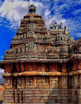 Kusuma, an ardent Shiva worshiper whose dedication earned him the Lord's grace and at whose request, as part of a boon, Shiva installed himself as a Shivalinga in the pious precincts of Grihesvara, is credited with setting up the Jyotirlinga. The temple grounds are spacious and surrounded by a wall. The Dasavatars are carved in red stone on the top half of the temple and have a very stunning look. Carved statues, artwork, and paintings can be seen throughout the building. Both Jyotirlinga and Goddess Griheswari is located in the sanctum sanctorum. The Durbar Hall, which houses the beautiful Nandikeswara, is built on 24 carved pillars.